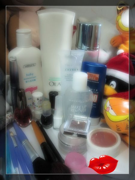 “美宝莲”的唇彩和杂牌的眼线笔、眉笔..