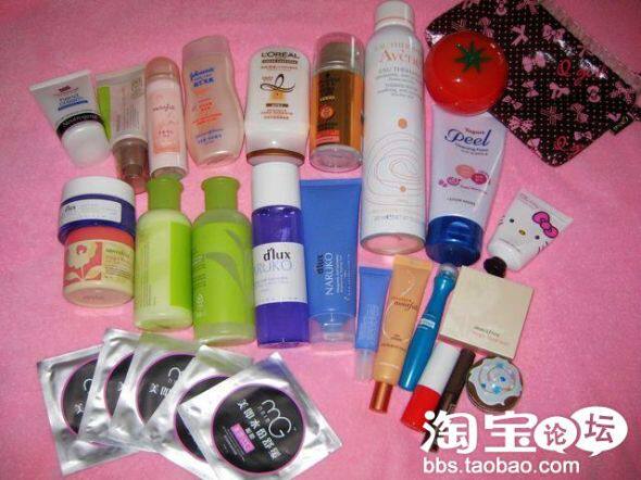上排左起:tonymoly西红柿美白面膜 牛耳薰衣草去角质啫喱 爱丽小屋莓果酸奶洗面奶