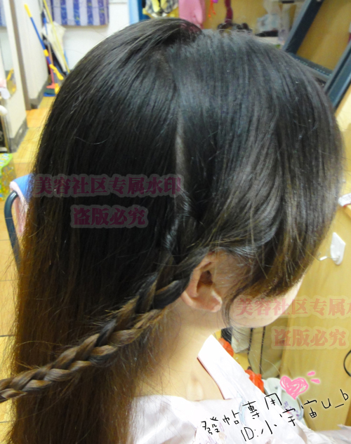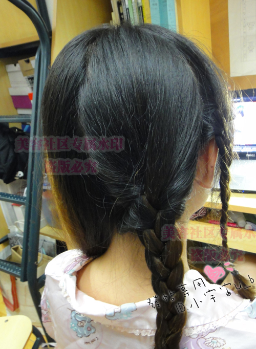 因为RR的头发发尾很碎,所以只能在最后的时候将头发扭曲起来.然后用黑色夹子固定.