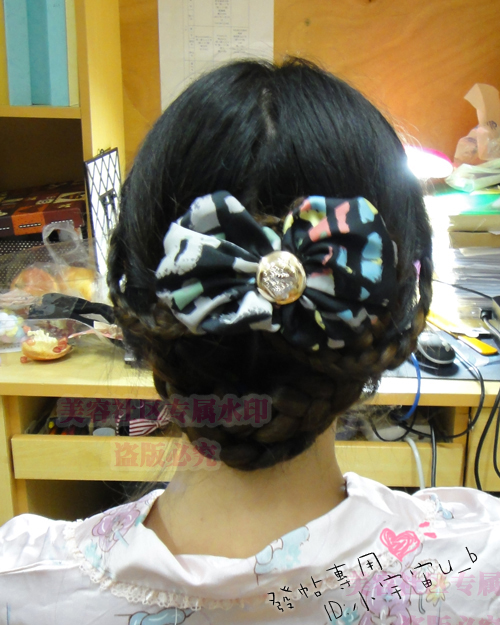 余下的头发我们可以绕上去,用黑色发夹固定.