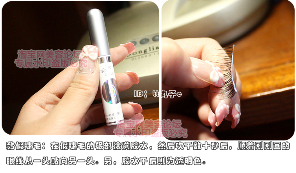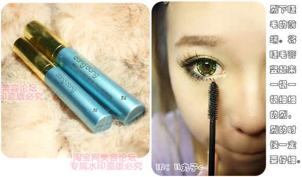 先用一管黑色的打底,然后将白色纤维覆盖在睫毛上,再用黑色融合。