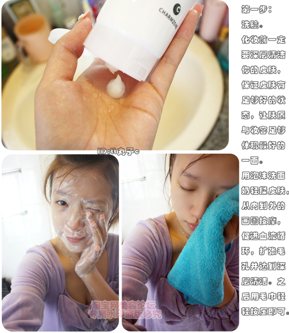洗脸。彻底的清洁,是化妆前必不可少的喔。