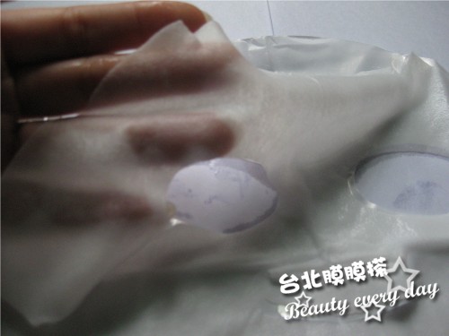 旧款的面膜纸比较硬~也比较厚,所以手指的颜色没怎么透出来~还是会看到白白的面膜纸~