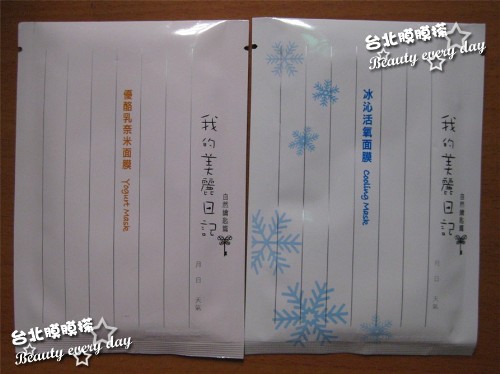 在面膜堆里找了半天好不容易找到了一张绝版的旧版优酪乳口味的美丽日记,为了方便亲们容易明白,这次对比的面膜款是连包装都换了的新版冰沁活氧面膜。