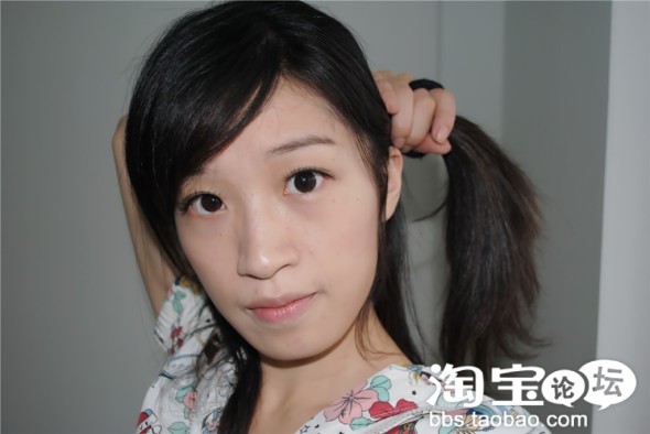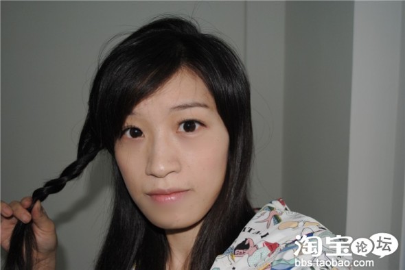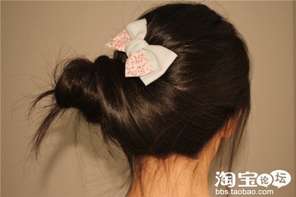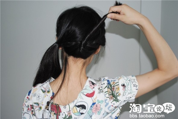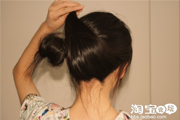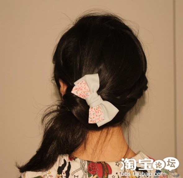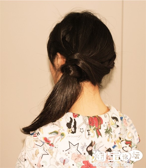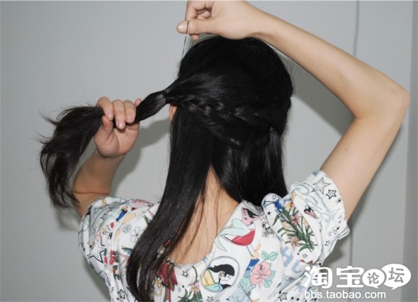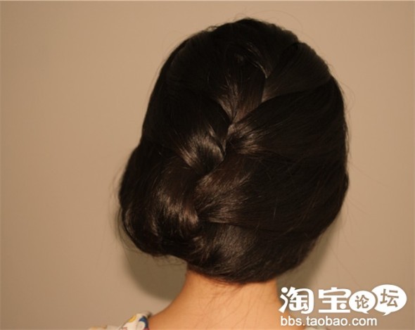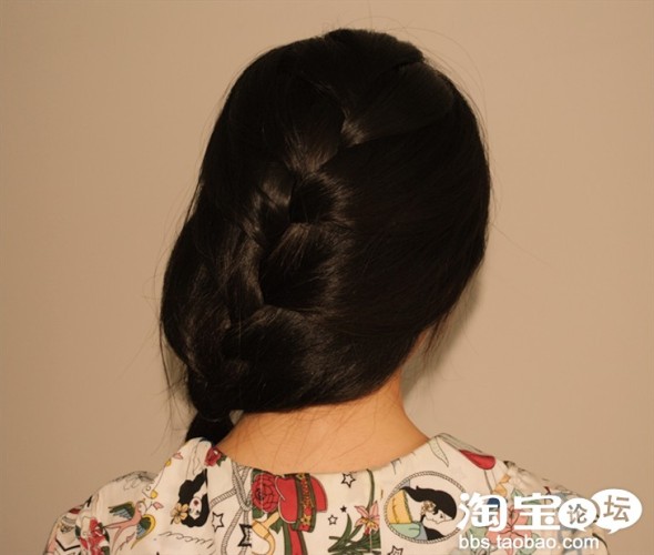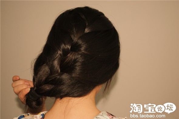 将皮筋内侧的头发挖一个洞,把辫子塞进去就好了,这个相信大家都会,因为这种塞法淘宝论坛上好多的。