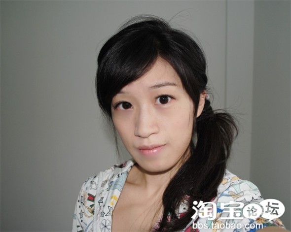 这个就是正面的样子了,我说了 如果是卷发效果会更好哦 这个发型的要点在于,头顶的头发一定要蓬松有弧度,才不会死板。