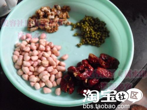 先准备,红枣、绿豆、花生、核桃、芝麻