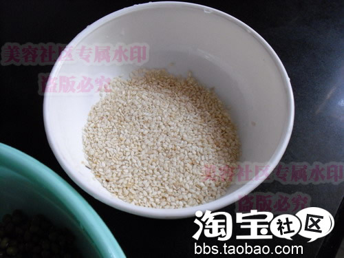 最后倒上芝麻,一定要先放开始的材料,然后放芝麻哦,再倒入水