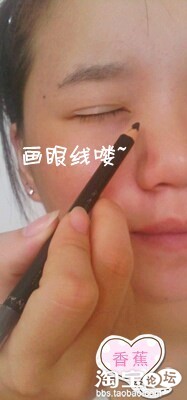 随手拿来眼线笔、美目贴、唇彩、眉笔(可有可无)、唇膏(可有可无)、睫毛膏(可有可无)