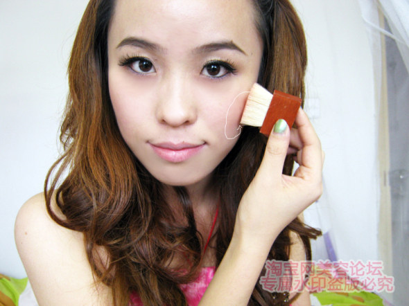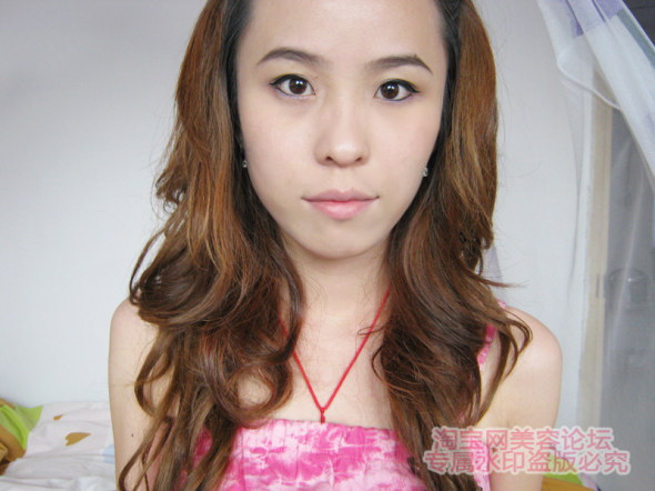 刚涂完,看上去可能有点白,显得不自然,但是没关系,用粉饼压一下就会很自然的!