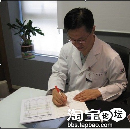 然后是见朴院长,比电视上的真实,一个大院长,一点架子都没有,亲切得就像邻家阿爸,他先和我打招呼,然后问了我的学习等情况,拉了一下家常后,我稍有的紧张都消失了。。。他给我做了一下假想的手术,效果确实很诱人。我问了一些关于副作用的问题,院长笑着说,是没有的,不用担心。