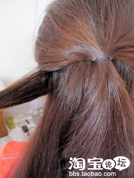 先从头顶上抓一少部分头发,用发圈扎好哟