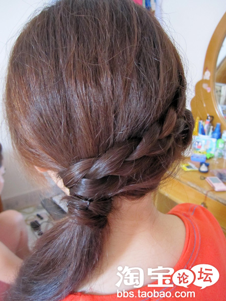 把编好的头发缠绕在剩余的头发上
