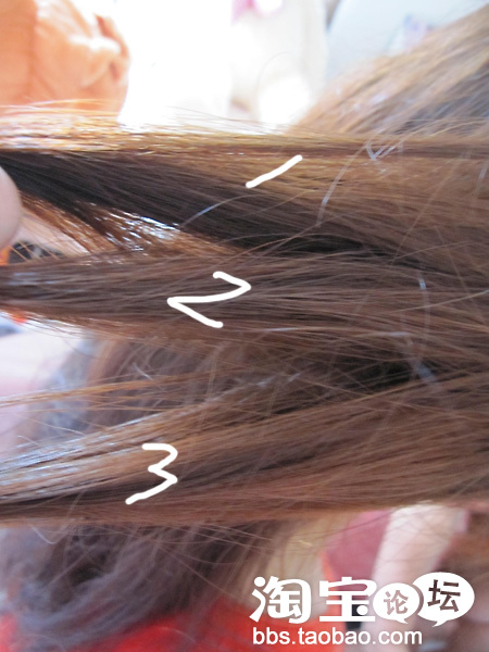 再将抓起的头发平均的分成三份