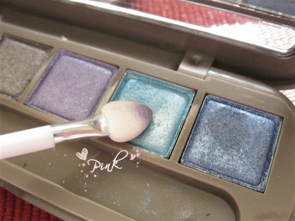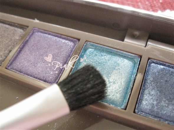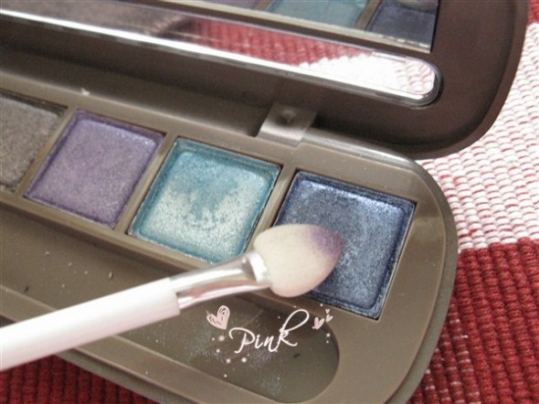 眼妆部分:先用蓝色眼影简单的涂上一层,不要太多。