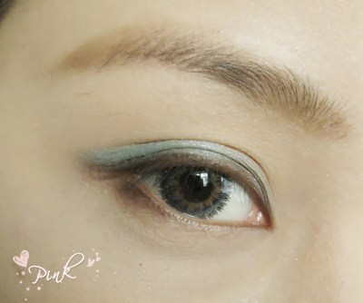 眼妆部分:在用蓝色在画眼线处在细细的涂一层。