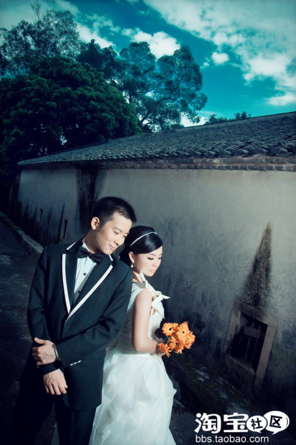 一组在老房子的,这套婚纱是我自己在淘宝上买的,非常喜欢,呵呵,很厚实,穿起来有点热哦···