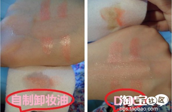 下面来看对比图~化妆棉沾上卸妆油 只擦一次的效果~大家看~卸妆效果基本是一样的~