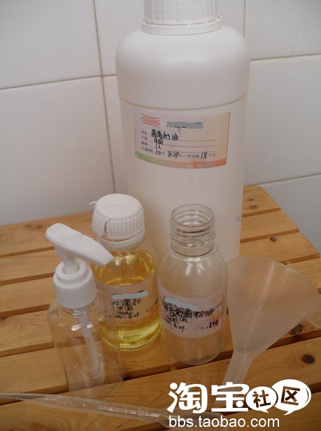 先看原材料:葡萄籽油(或橄榄油)100ML,吐温80 10ML