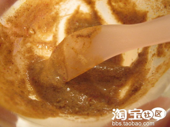 放入清水调成这个状态就可以啦~看到里面红色的东西了吗?那个是藏红花,价格是相当的贵,可比黄金.所以不能浪费.
