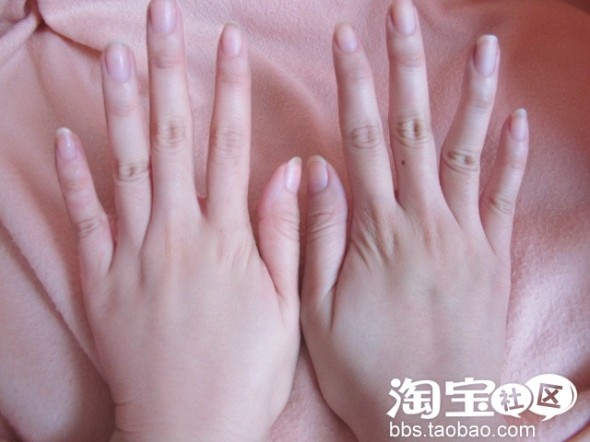 做完了,看看两个手的差距,怎么样,很不错吧,所以说女人不能懒~~~