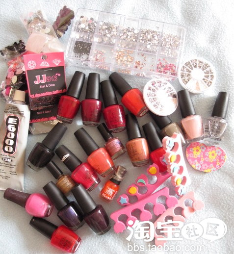 不多了说了,给大家演示几款超简单的美甲.办公室的MM也可以做,毕竟我们要工作无法弄那么长的指甲,连打字都打不了,老板眼睛都要气爆了.哈哈.么么介绍的几款都很实用(材料价格也很便宜),而且很漂亮哦~~ 晒一下自己平时用的美甲工具