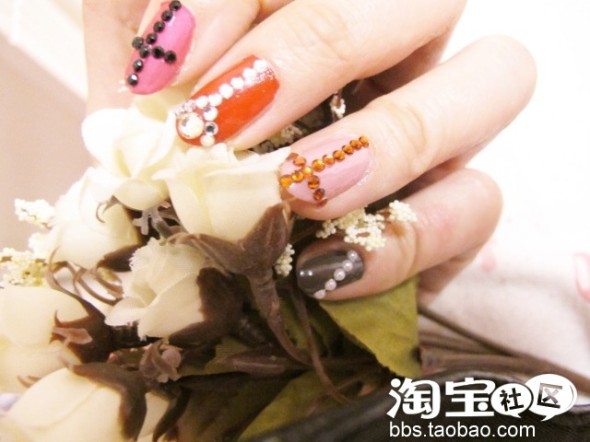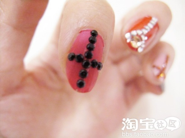 PS:大家可别学我做成这个样子哦~ 我是为了示范.一个指甲一个样式真的好乱.....
