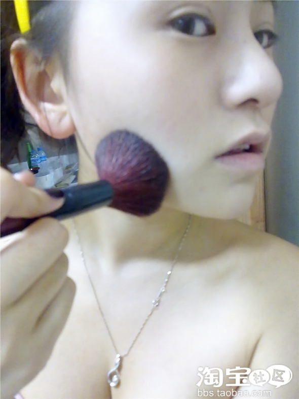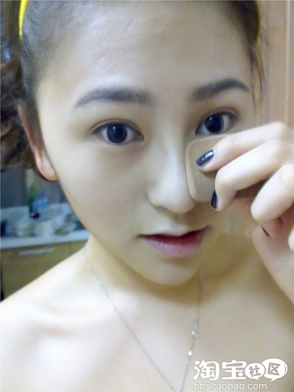 现在开始打鼻影。 要高高挺挺的鼻子。 用兰蔻的粉扑。