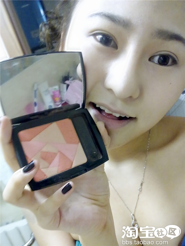 这款腮红超级自然, 用腮红刷混在一起抹就OK~