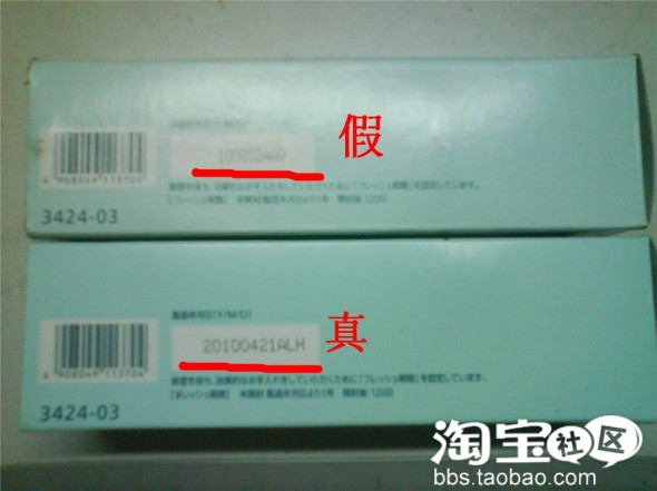 然后制造的年月日,真的那款是11位的,有把具体的时间标得很清楚20100421ALH,而假的只有9位,只是100802AAQ。