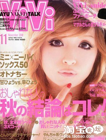 《vivi》10年11月号。亮丽的金黄发色,使眼妆更加突出,显得眼睛又大又圆。
