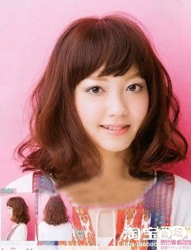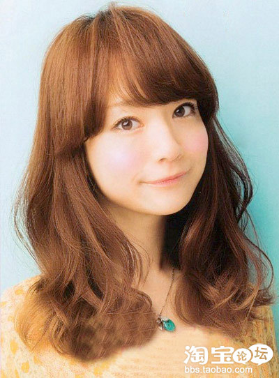 利用两颊两侧蓬松动感的卷度和齐刘海来改变脸部轮廓,瘦脸效果极佳。适合个性柔美的原来MM。