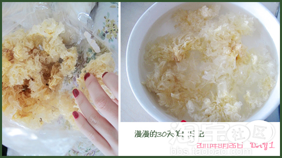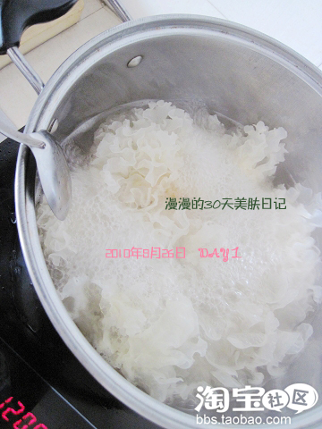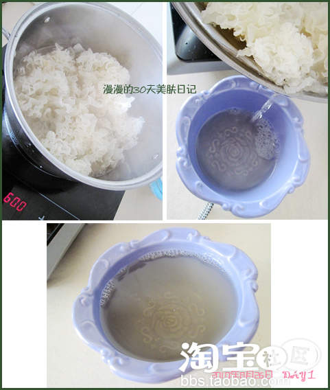 第二天啦,继续努力。昨天有MM提醒我说银耳汤是不能隔夜的,不过我做的银耳汤不是用来吃的,是用来敷眼睛的。