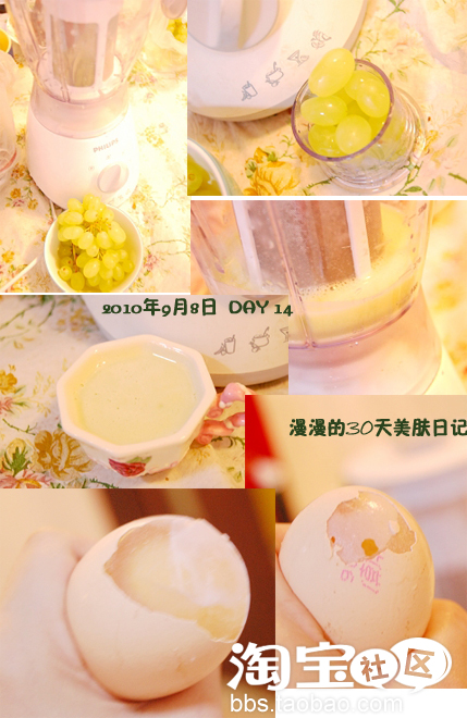 然后榨了葡萄汁和鸡蛋搅一起敷个面膜~