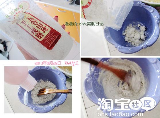有一种很细的玉米粉,还有一种粗一点的,粗的少放些,细的多放些~ 我用玫瑰纯露调和敷的~~