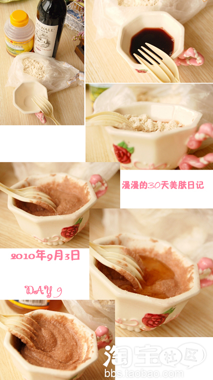 红酒面膜~我总觉得买回来的都不靠谱,不一定有红酒不说,还有乱七八糟的色素香精~ 不如自己做~