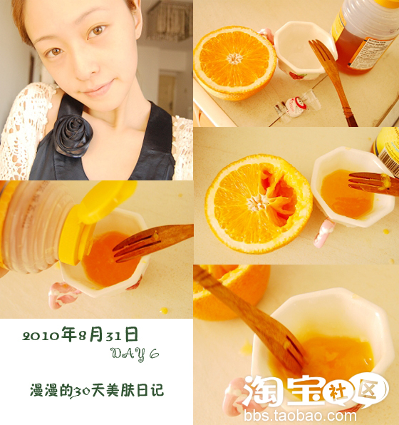 然后加了点蜂蜜,用纸膜敷的~~ 最后趁着脸上橙汁没干的时候用珍珠粉又磨了磨鼻子~