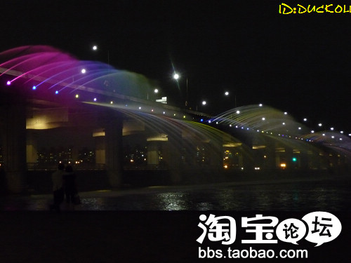 世界杯期间,我跟朋友很有聊的跑去看喷水大桥,其实是因为她想去,所以我就陪她去了,好歹我们也快要回国了……真舍不得。韩国的喷水大桥其实挺漂亮的,每天定时喷水,还会播放经典的英文歌曲,哈哈。。。。。。。
