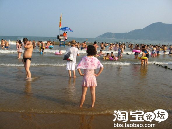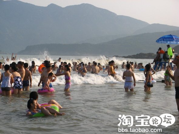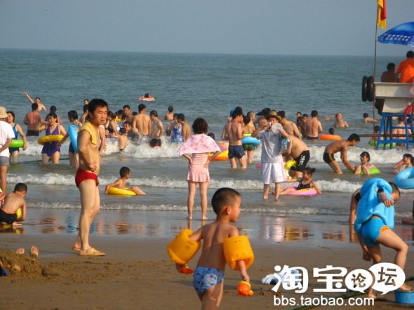 海滨浴场,人超多,黑压压一片