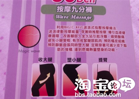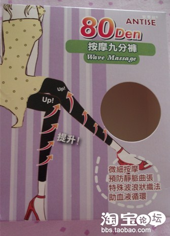 屈臣氏买的按摩裤,这一款还不错哦,不会觉得很紧,是利用织的波纹来按摩腿的,我觉得每天穿这个去散步会有效果,如果只是坐着不动就不会有太好效果