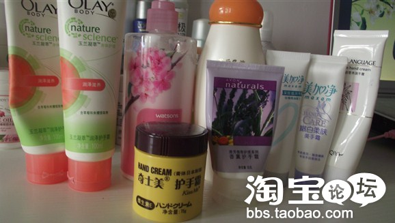 手是女人的第二张脸,不可以忽略哦,玉兰油的护手霜效果还不错,吸收快,滋润度也够,奇士美的是小日本生产的,效果很好的说,美加净有几款也不错,价格很合适,支持国产哦