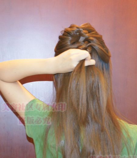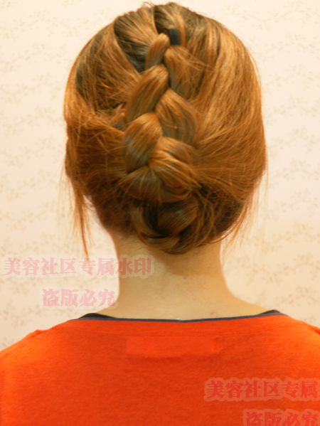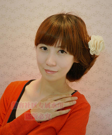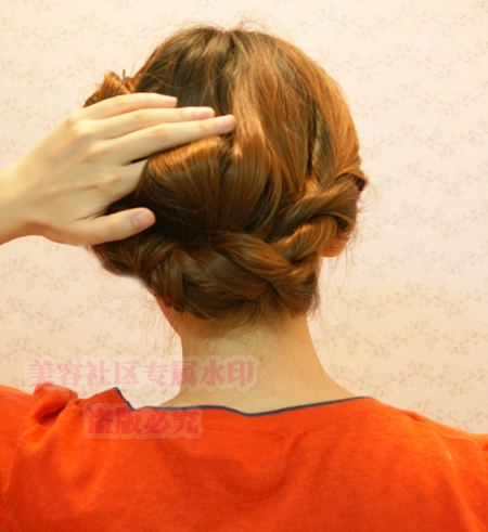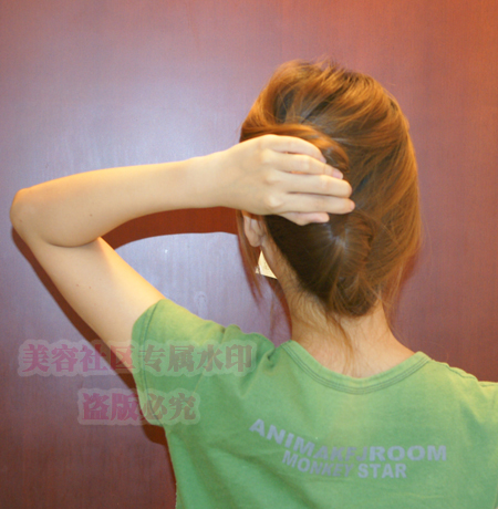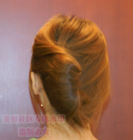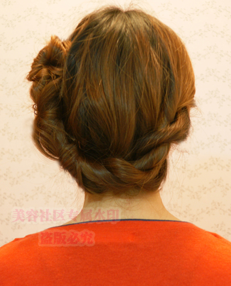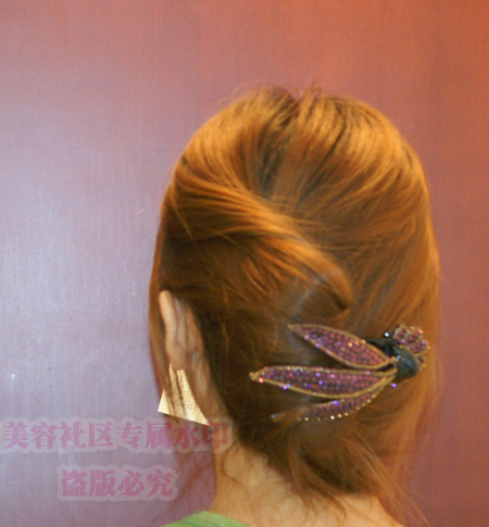 所有头发都盘上去以后,在一侧用小黑夹收尾