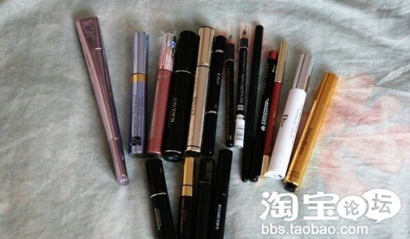 这里都是近期败来眼部的东西了,有睫毛膏,眼线液,眉笔等,我把它们分类到眼部彩妆这里,最近很郁闷,化妆的时候发现刷了下眼睫毛一会就会变熊猫,不知道大家有什么好办法呢.
