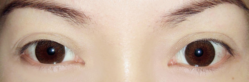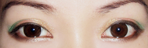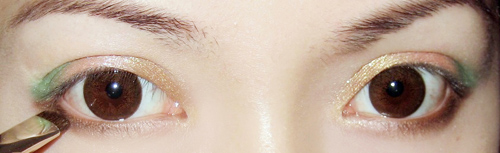 然后眼妆就完成~~记得贴假睫毛~~~我喜欢不夸张做作的睫毛~~戴上就像自己的睫毛一样自然~~