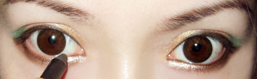 重点来了~~不会画眼线的同学请用笔来画~~不要用眼线胶眼线液什么的来挑战自己~~(不过现在有出了个海绵头的所谓的眼线液的眼线笔还蛮容易用的,不过不适合这个不会出错的眼线画法)