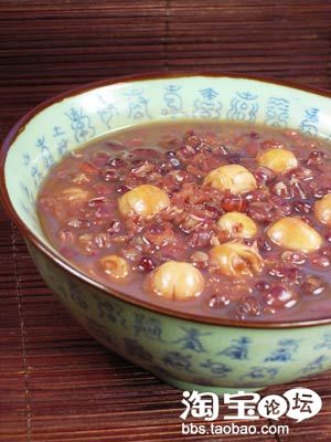 早餐 红豆大米粥一碗,爽口小菜一碟(黄瓜、胡罗卜、芹菜加上煮五香花生米),桂圆或大枣1把