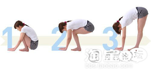 在做这组练习时,需注意保持手掌和地板之间,两个膝盖之间不分开。