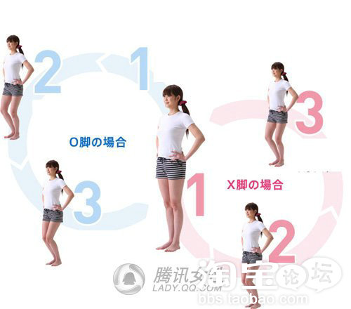 美腿就是,有5处并拢,4处空隙的腿。具体来说,就如以下图片所示,标有○的5处(大腿,膝,腓,脚脖子内侧,脚尖)左右紧贴在一起,标有×符号的4处(大腿和根儿之间,大腿和膝之间,膝和腓之间,腓和脚脖子之间)是处于分开的状态。除此之外,如果膝朝向着正面且腿形笔直的话,可以说是非常美丽的腿了。