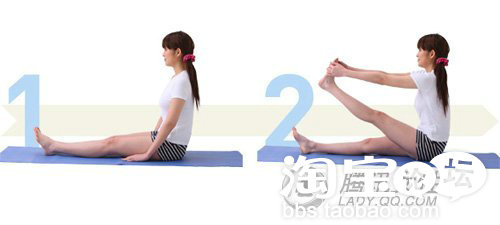2双腿伸直,两手握住其中一只脚掌,将腿缓缓抬起,这个姿势保持5秒。换另一边。在做此组练习时,要注意两腿间保持并拢状态,且膝盖处不弯曲。
