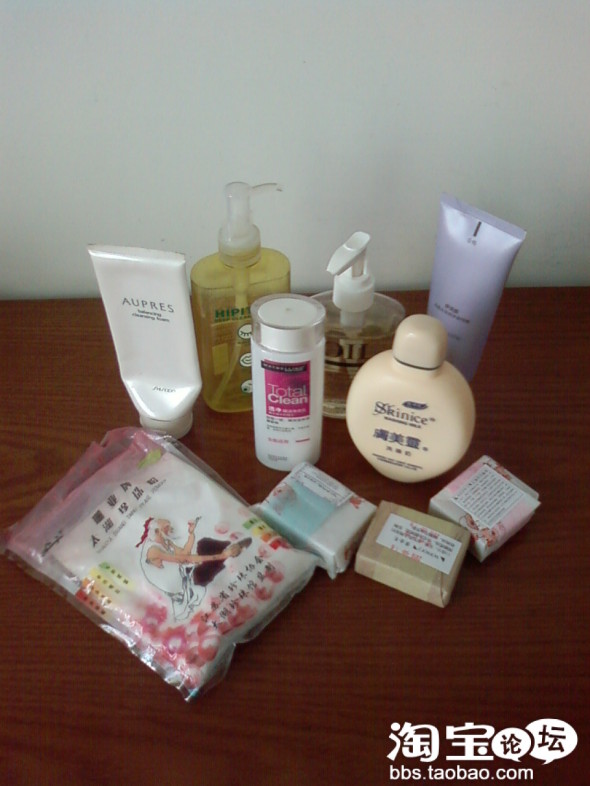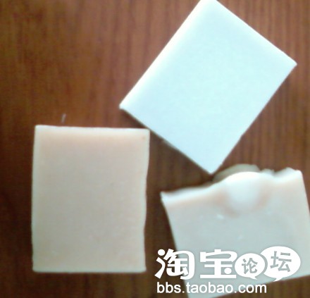 6、手工皂:最近移情手工皂了~不过今天刚到手还没有试用过。稍后会奉上使用感受。好了~大概使用了快两个星期了吧~拿到手的第一印象就是挺小的~因为习惯了舒肤佳的手感~摸着这个还真感觉有棱有角的~首先报告一下这三块分别是红酒羊奶酪皂、豆腐皂、黄金皂。首先其实这三块儿皂皂最主要的功效就当然是清洁喽~其实对我们来说既卸妆之后就是把卸妆残留的化妆品和油脂及黑头再次清洁掉~黑头是很多MM痛恨的~不管你的清洁产品多强大你都要用温水洗脸!大S说用冷水洗是的你的皮肤紧致了可是脏东西都没有清出来这哪能谈得上护肤对吧~温水打湿脸尽量时间可以长一点给毛孔充分的时间打开!皂的泡沫很丰富很细腻这个很赞呀!由于是手工皂无化工所以我就放心的在脸上搓呀揉呀的~然后用温水冲洗最后再用冷水收毛孔~当当~干净呀!红酒的过会儿有点干,但豆腐的就好~三款皂洗完都好滑牙~不像有的洗面奶洗完涩涩的~不过即使洗完会干但是相信姐妹们不会出去溜达一圈儿再涂水和乳液的吧~呵呵其实水和乳液在皮肤微湿的状态下涂抹效果最好吸收也最好~总之以后就用手工皂了~最主要的是我看帖子说手工皂也是低碳的哦!无污染的吼吼~!